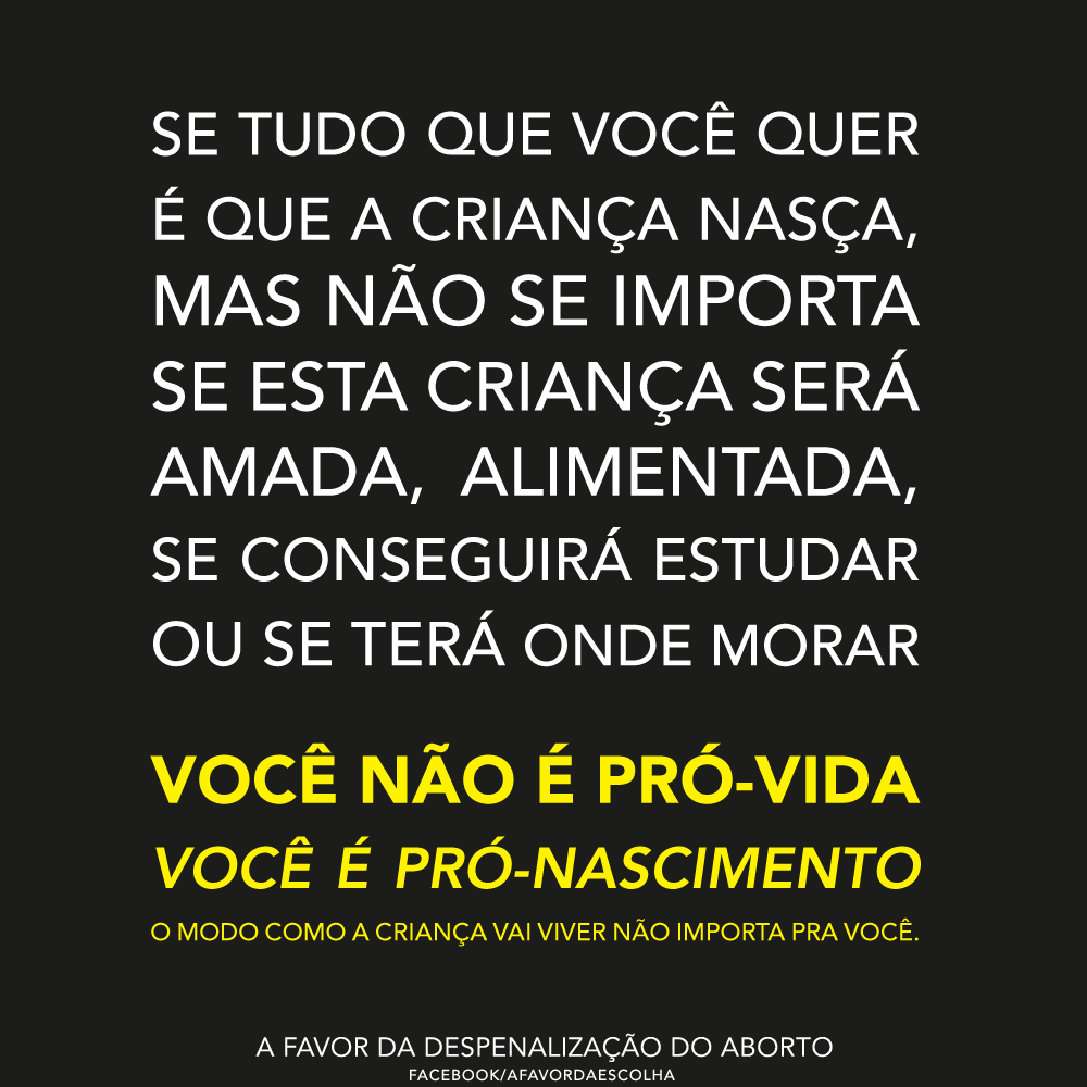 diz respeito ao que você, pró-vida, pensa. Diz respeito a poder escolher ser